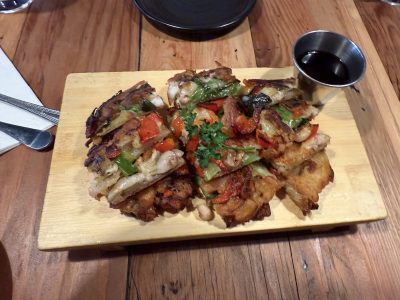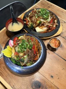 我們點了海鮮煎餅、炸豆腐雜菜和牛丼。