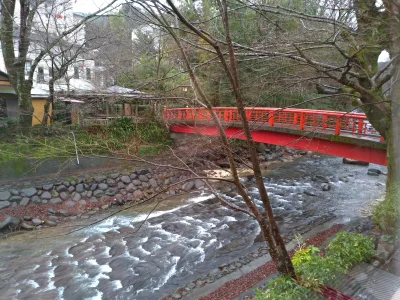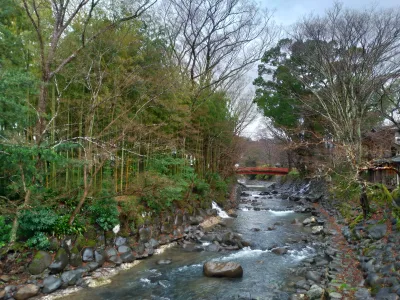 桂川上有好幾座朱紅色的橋樑,遠遠望去非常亮眼。修善寺溫泉的中心地帶及散步小徑都圍繞在桂川兩側。