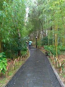 曾被評為米其林二星的散步景點。長度約400公尺。幽靜的竹林裡,好像真的能悟出什麼人生真理。